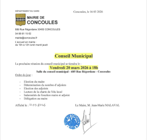 Conseil Municipal Vendredi 20 mars 2026 18H00